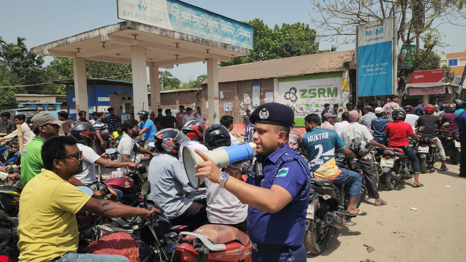 এ বিষয়ে ওসি মো. জাহেদুর রহমান বলেন, “সাধারণ মানুষ যাতে কোনো ধরনের বিশৃঙ্খলা বা ভোগান্তি ছাড়াই তেল নিতে পারেন, আমরা সেই চেষ্টা করছি। বিশেষ করে যারা বৈধ কাগজপত্র ও লাইসেন্স নিয়ে আসছেন, তাদের অগ্রাধিকার দেওয়া হচ্ছে। কোনো ধরনের কৃত্রিম সংকট বা প্যানিক বায়িং যাতে না হয়, সেদিকে আমাদের কড়া নজরদারি রয়েছে।”
